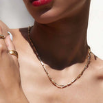 The Addai Link Necklace is the perfect mix of sturdy and dainty. A HOWL Jewelry staple, this piece showcases a variety of link designs featured around the necklace, each casted and crafted in Los Angeles. With a mix of rectangular and round shapes forming each link, this necklace has uniquely combined architectural strength with organic femininity.