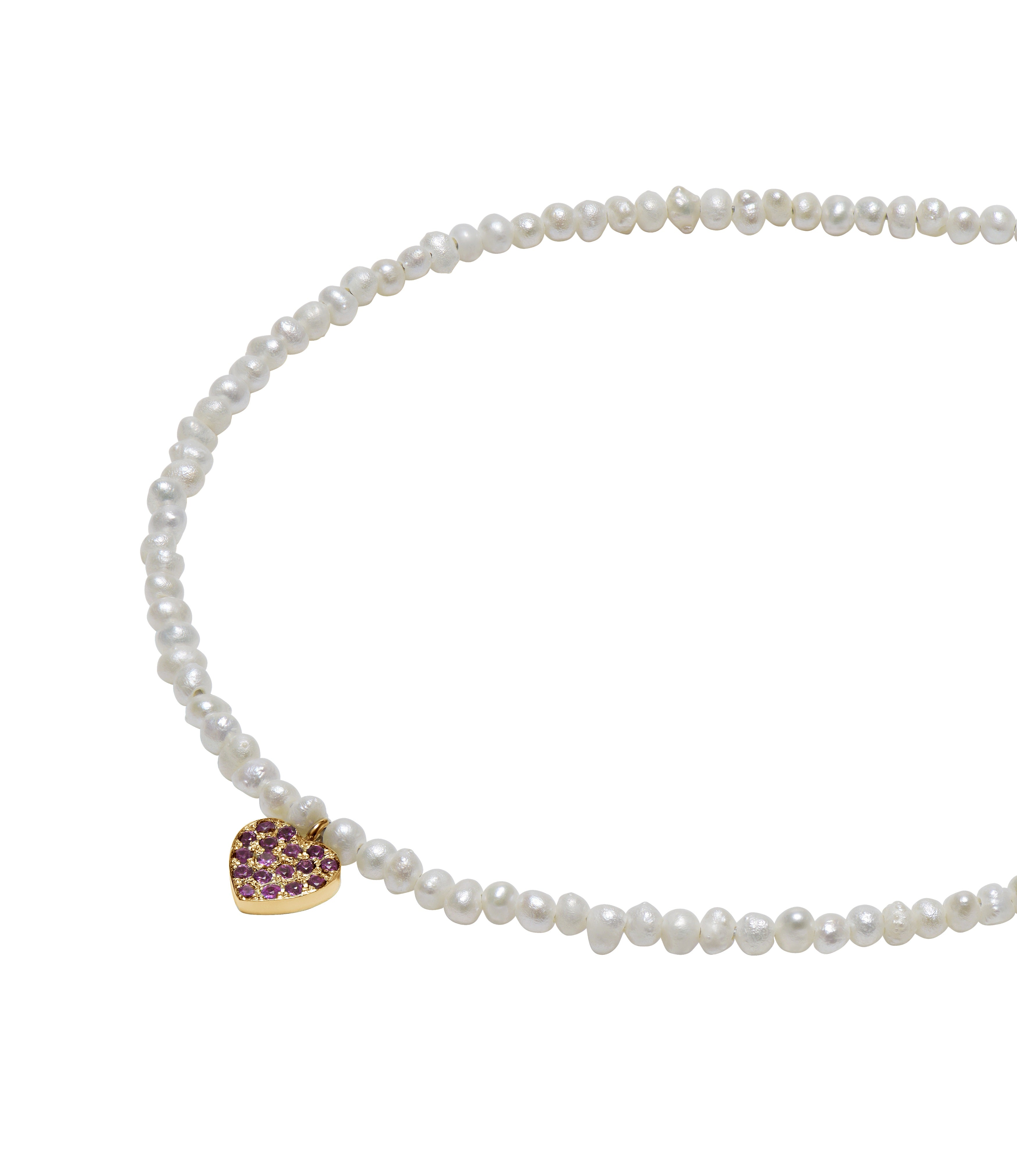 Baby Potato Pearl & Pink Sapphire Heart Beaded Necklace