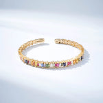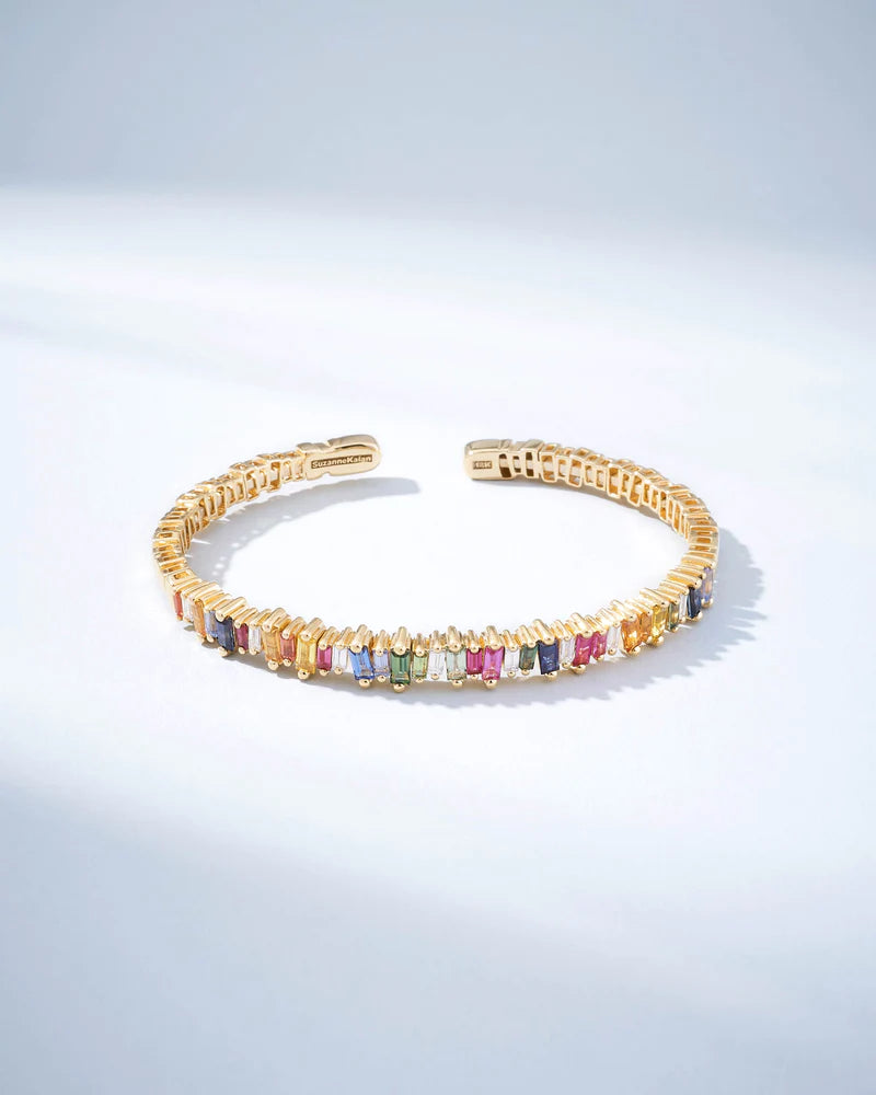 Bold Rainbow Sapphire and Diamond Baguette Bangle