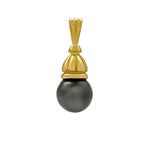 The Elise Pendant with Tahitian Pearl is an elegant pendant that features a lustrous black pearl, suspended in a beautifully crafted golden cradle, adding a touch of sophistication and highlights the natural beauty of the pearl.