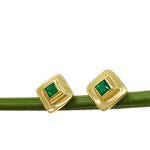 The Emerald Stone Studs feature bright green, square Emeralds. The large green Emeralds speak to growth, love, and the power of rebirth. Emerald stones are referred to as "The Jewel of Kings". Rare and beautiful, Emerald's stunning green color is honored amongst cultures worldwide.