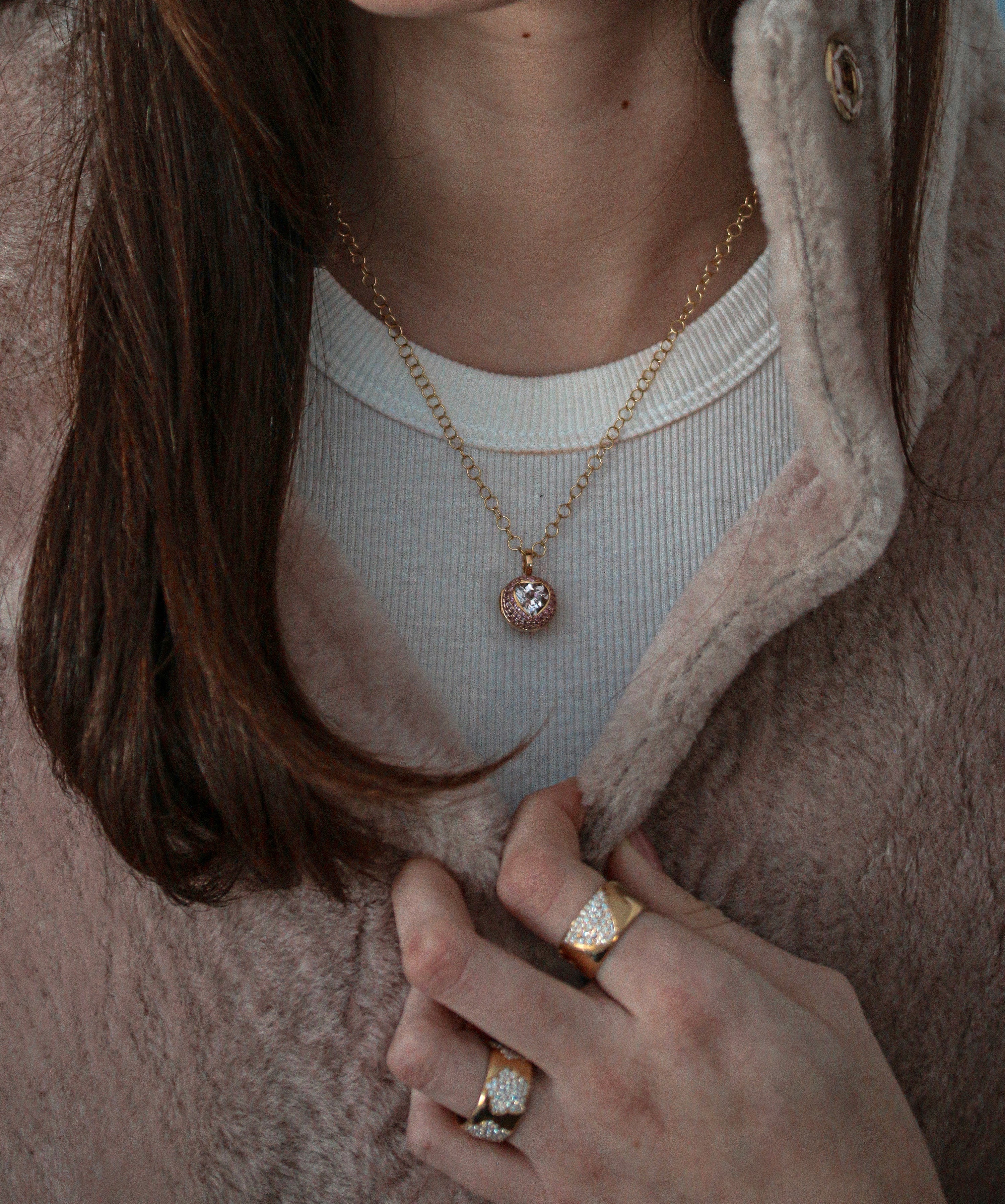 Upgrade your jewelry wardrobe with our Morganite & Pink Sapphire Peekaboo Heart Necklace. Crafted in 18k gold and tonal pink sapphires, this ball necklace showcases a stunning giant morganite heart, which opens up to reveal another pavé sapphire heart mirrored at its center. The most unique gift for a special woman you love.