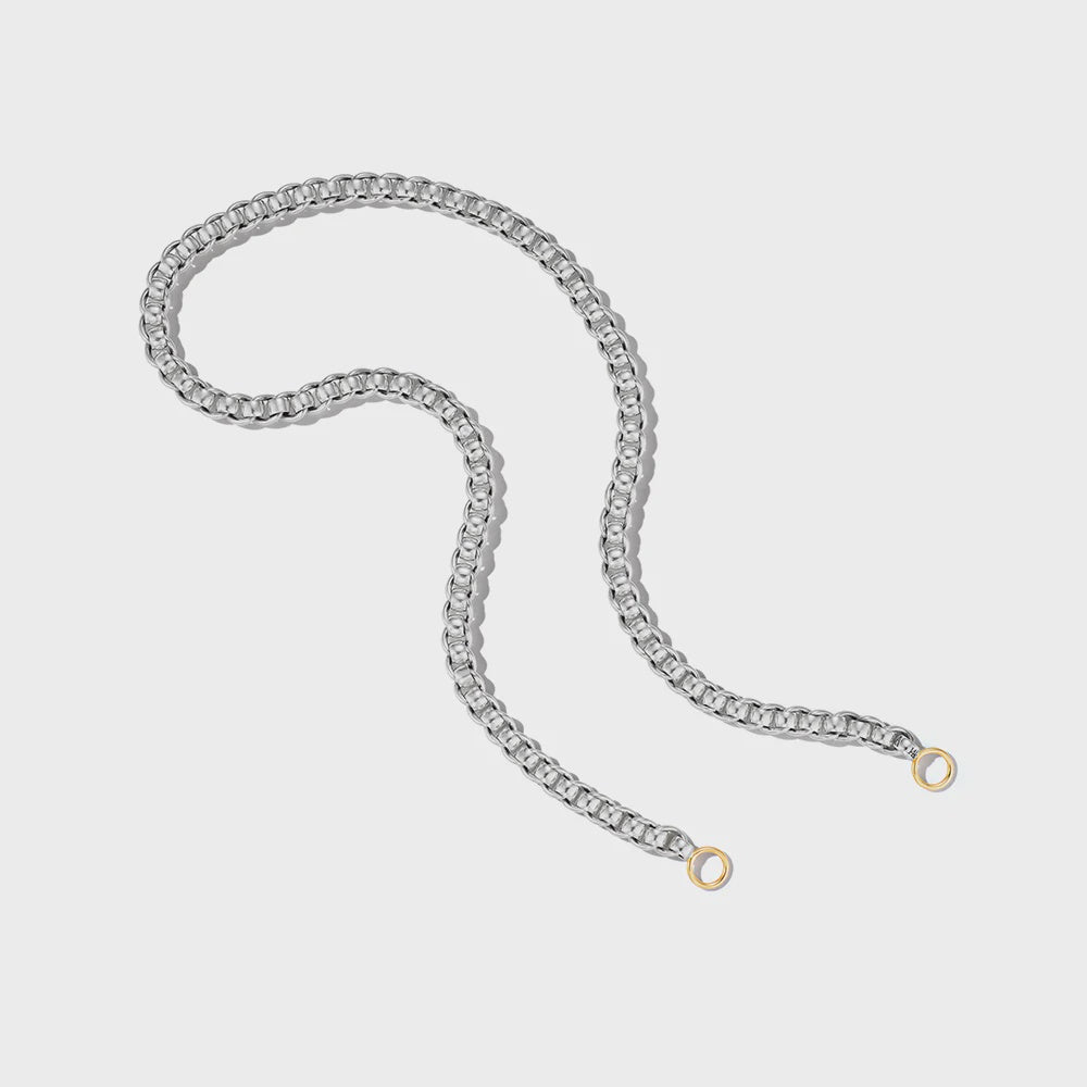 Lighter than a Mini Mega, heavier than a Heavy Curb—this rolling chain is “just right.” Crafted in sterling silver, it delivers a chunkier look while unlocking a whole new world of fiddling. It’s as spectacular from the top as it is from the side, and the joy of rolling it between your fingers or along your wrist? That’s an experience we think everyone deserves. This chain doesn’t come in “a Lock version”—because it works with all the Locks. Really.
