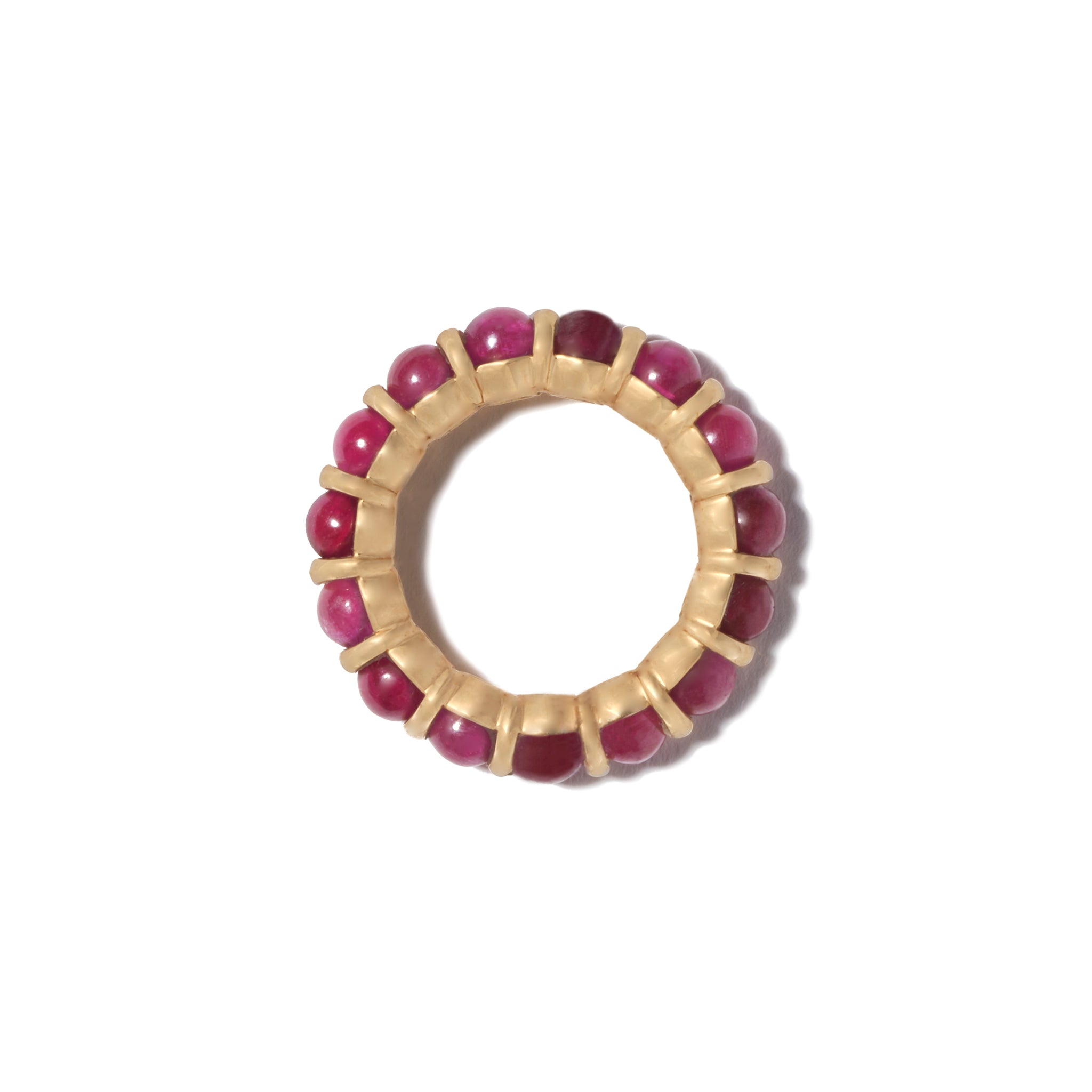 The idea for a ring with balls that roll was an afterthought of the Kissing Spheres ring from our DiMe Siempre series. We developed diamond balls for its closure, and seeing that made Marla think all that was missing was them actually moving.