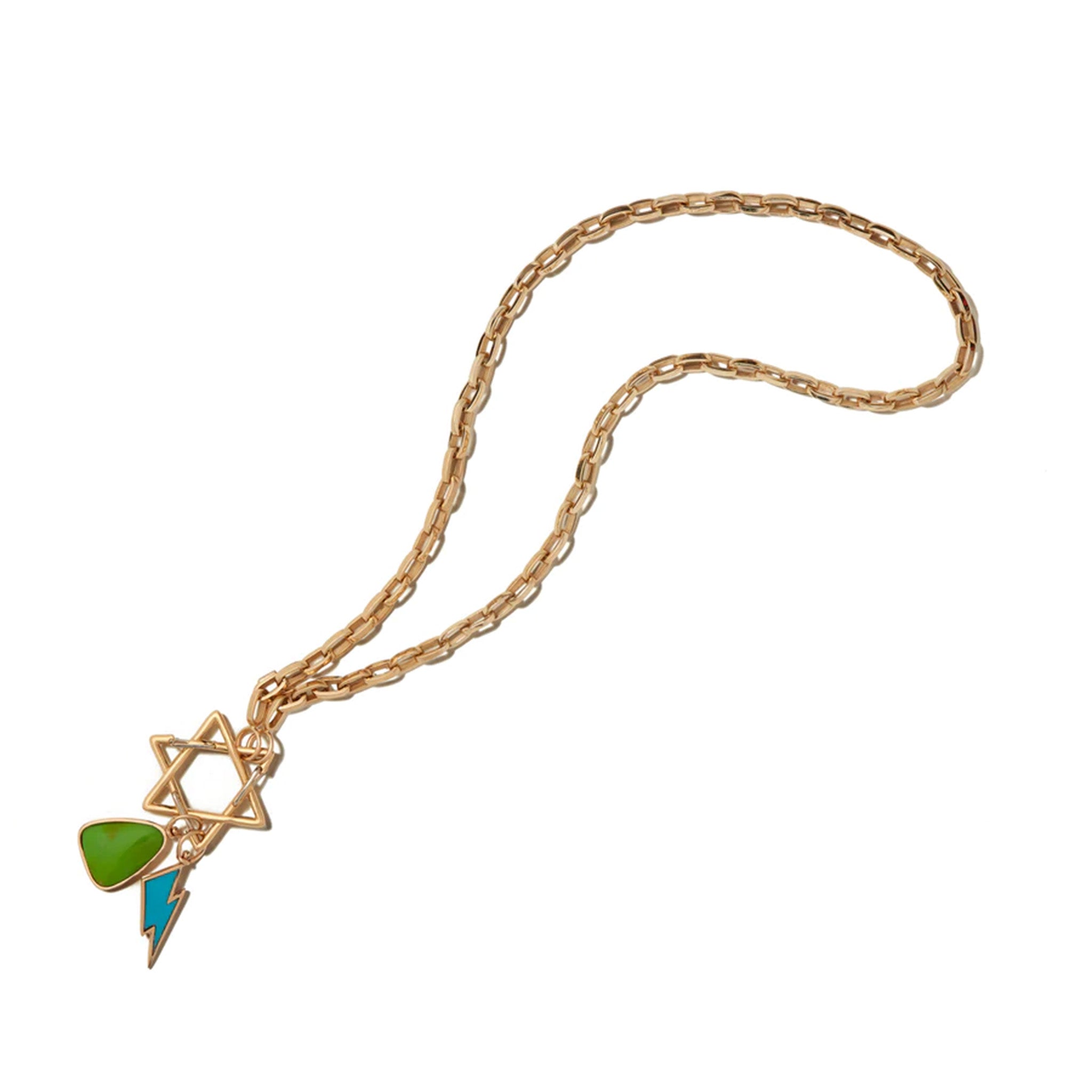 The Star of David Lock opens in three places, allowing it to be a place to connect chains in different ways or a charm holder. Or even both at the same time.