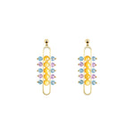 This beautifully crafted pair of earrings features hand selected golden Mother-of-Pearl, Aquamarine and Amethyst beads set in 18k Yellow Gold. The gems are chosen for their quality and colour to best echo those hues in Claude Monet's painting ‘Water-Lilies’. This painting hangs in The National Gallery, London.