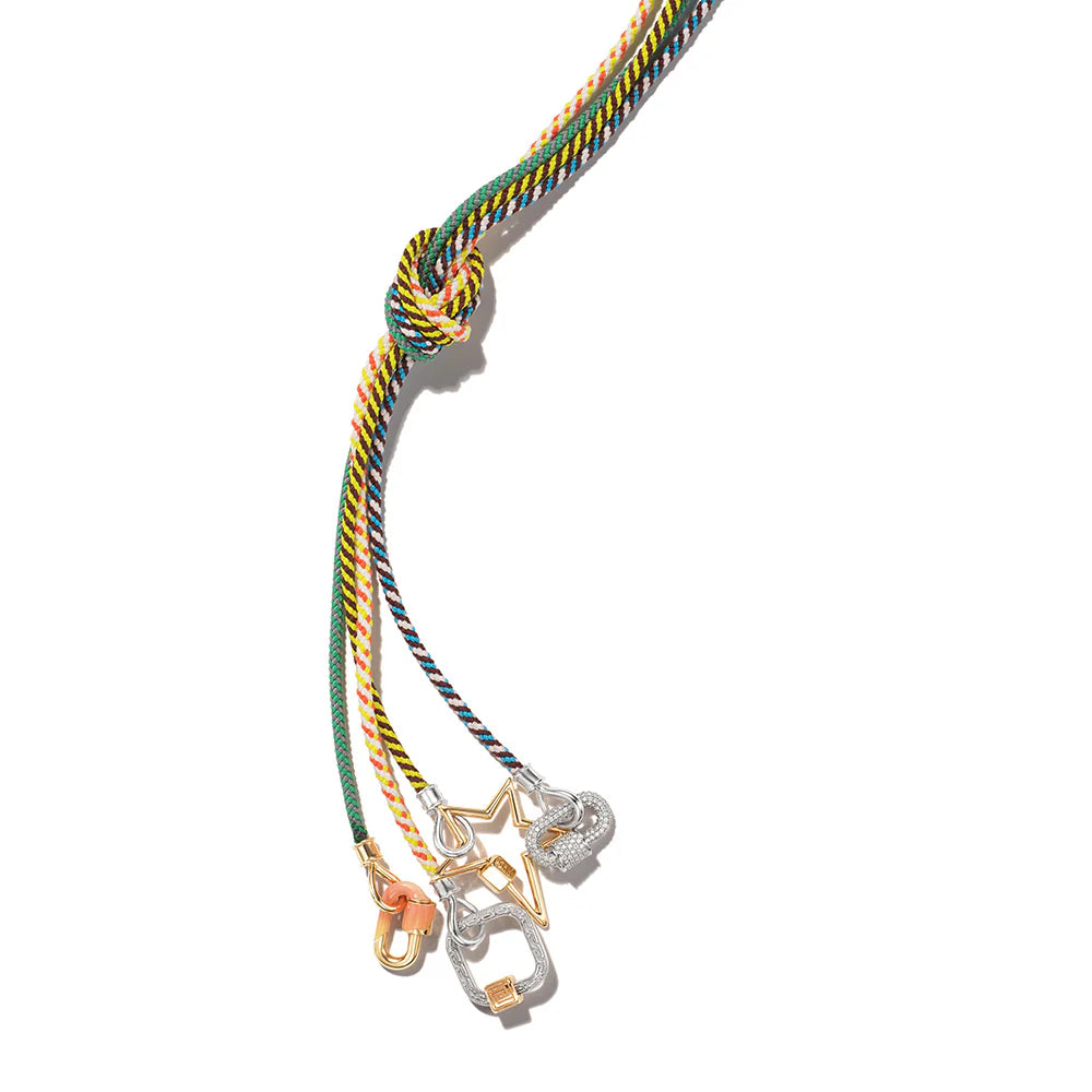 The String Project is finished in 14K yellow gold or rose gold and sterling silver loops. The string is made with Dyneema, the world’s strongest fiber, a fiber that is 15x stronger than steel but light enough to float in water. It’s made in the USA just for Marla Aaron.