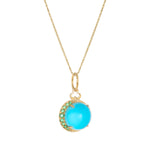 Turquoise Moon Charm in 18k Gold | Green Garnets