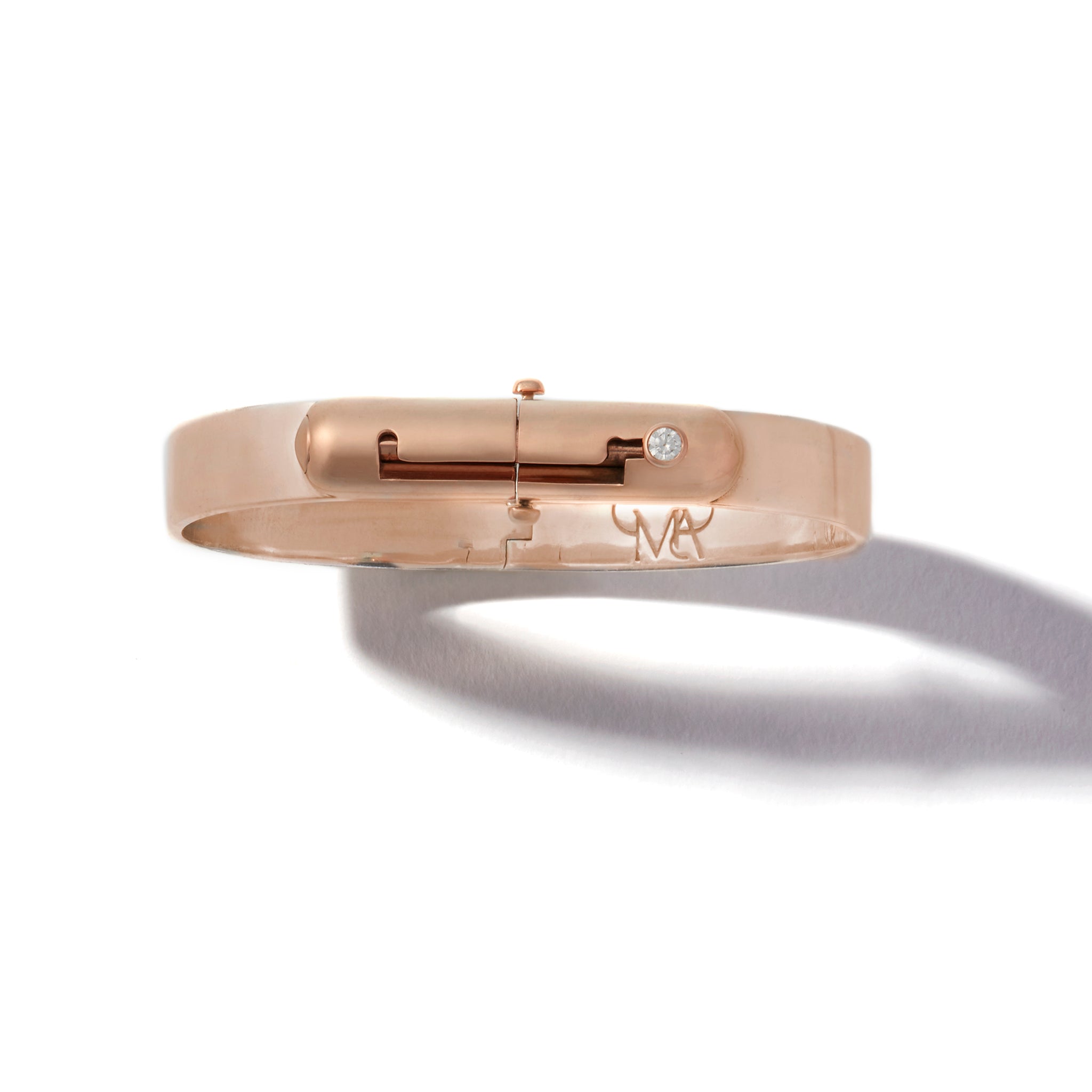 We wanted to build a bracelet shaped like a wrist—flat on top, rounded at the sides. But fiddle-worthy. I’d been wanting to incorporate a barrel style lock from a door and an exposed hinge into a piece somehow—they’d been on my desk for a while—one of each—waiting for a home. When we started modeling the prototype the shape of the domed closure reminded me of the 1934 Burlington Zephyr 9900 train—train that rain from Chicago to Denver. The function is the story of this bracelet as is the case with our pieces.