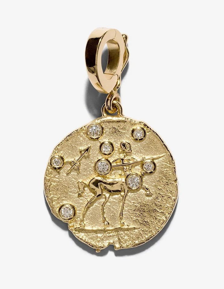 Featuring Ancient Greek Zodiac symbols, with their constellations overlayed in diamonds. Each is engraved on its back with its Zodiac sign.