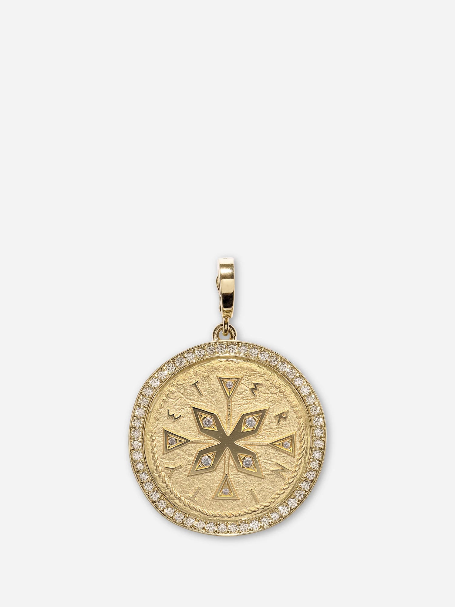 27mm coin; Made of 18K Yellow Gold & .37ct Pave Diamonds