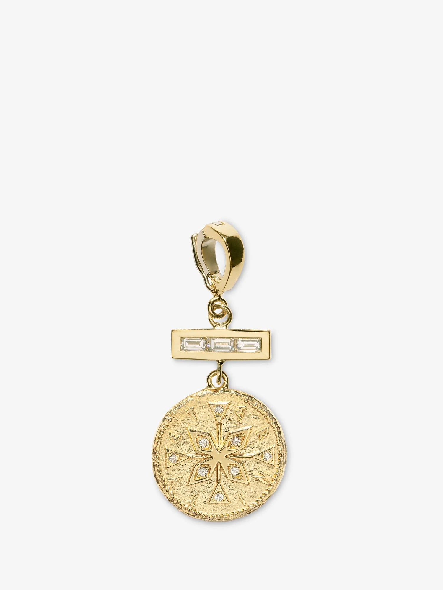 17mm coin; 18K Yellow Gold & White Pave Diamonds