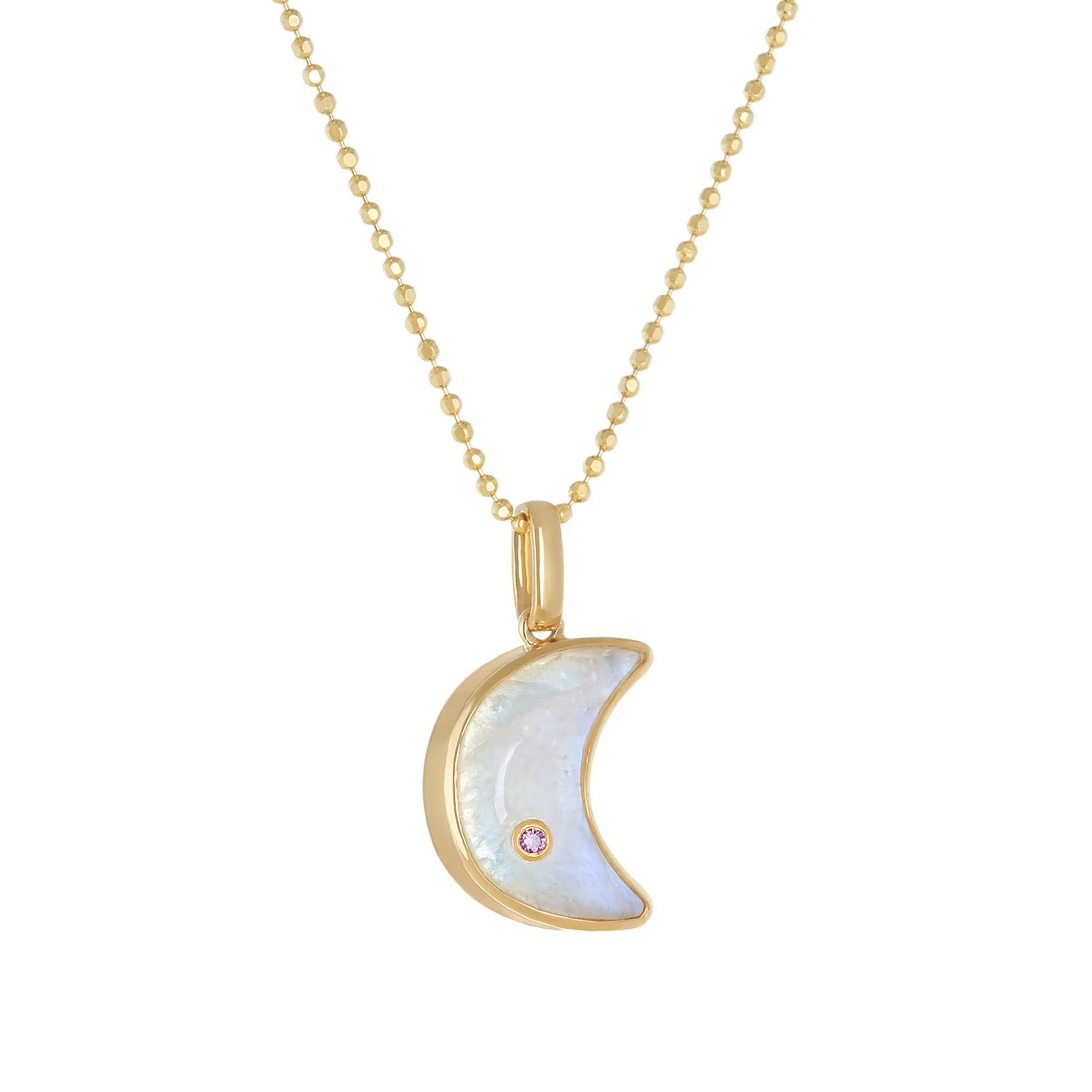 Capturing the ethereal beauty of the moon in a graceful crescent design. This charm showcases a luminous moonstone, delicately nestled within the crescent shape, radiating a mesmerizing glow.