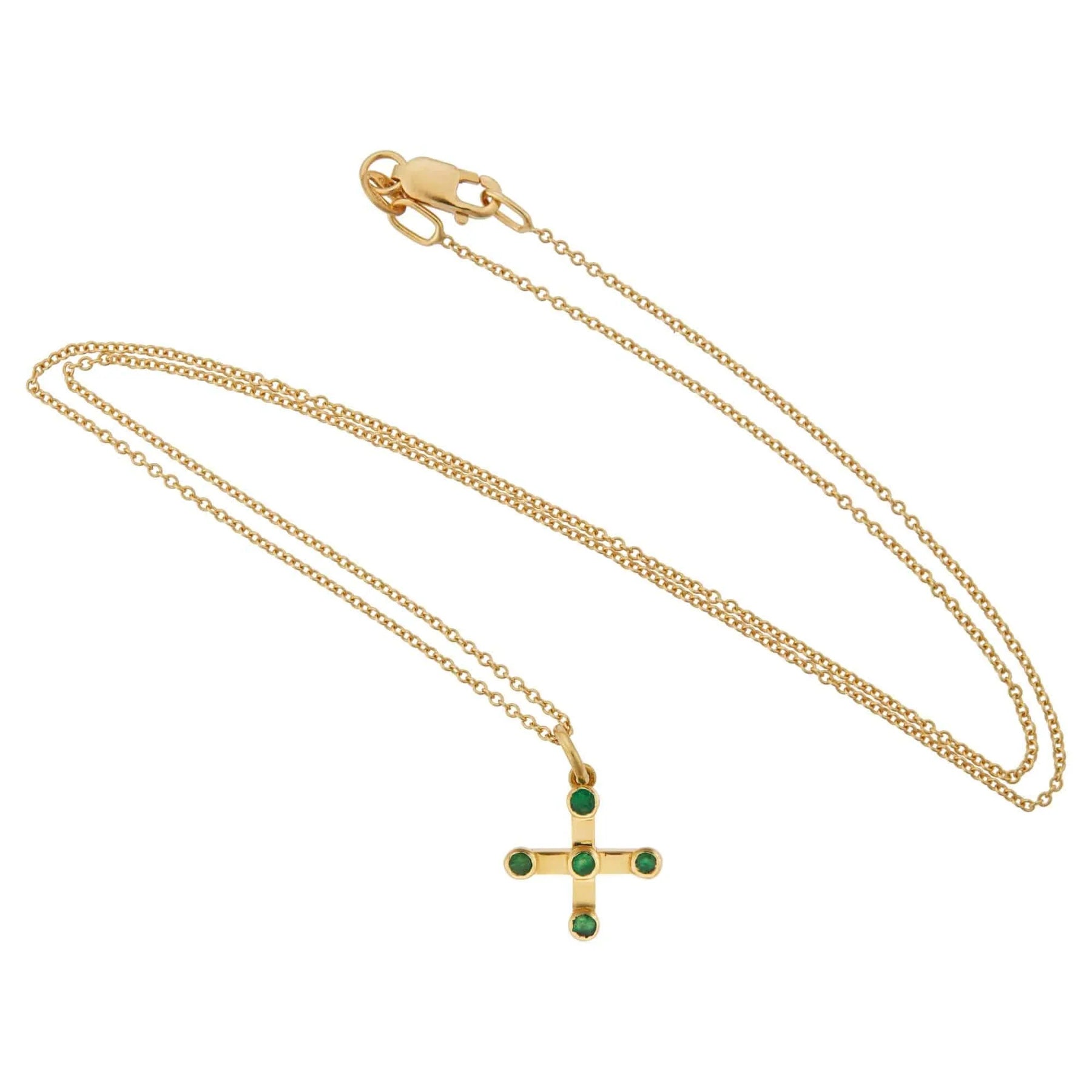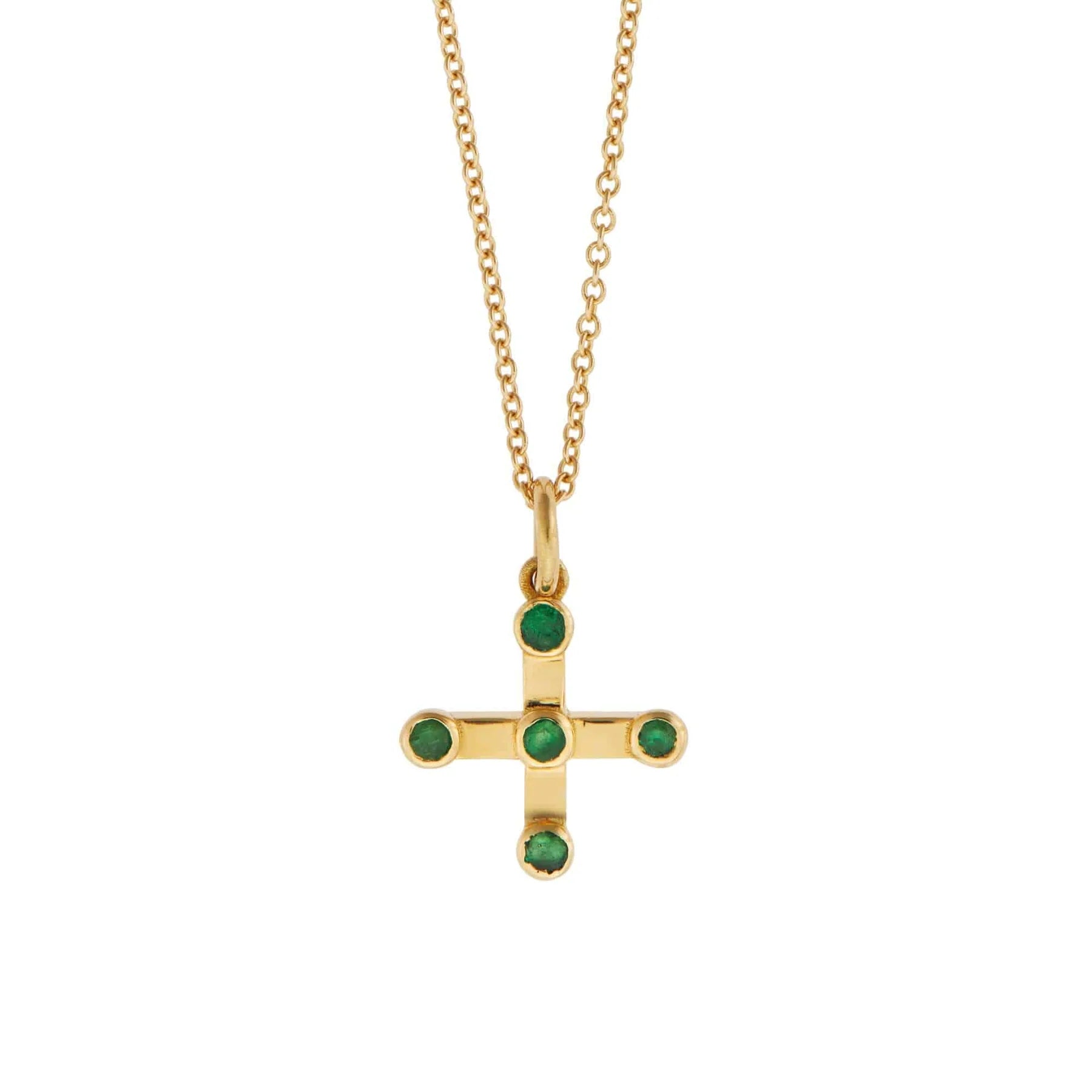 This exquisite Stepping Stone Cross pendant is a timeless piece, handcrafted from 18k yellow gold and adorned with deep green emeralds to bring a luxe, sophisticated touch. An iconic and meaningful accessory, it is perfect for adding a touch of subtle elegance to any outfit.