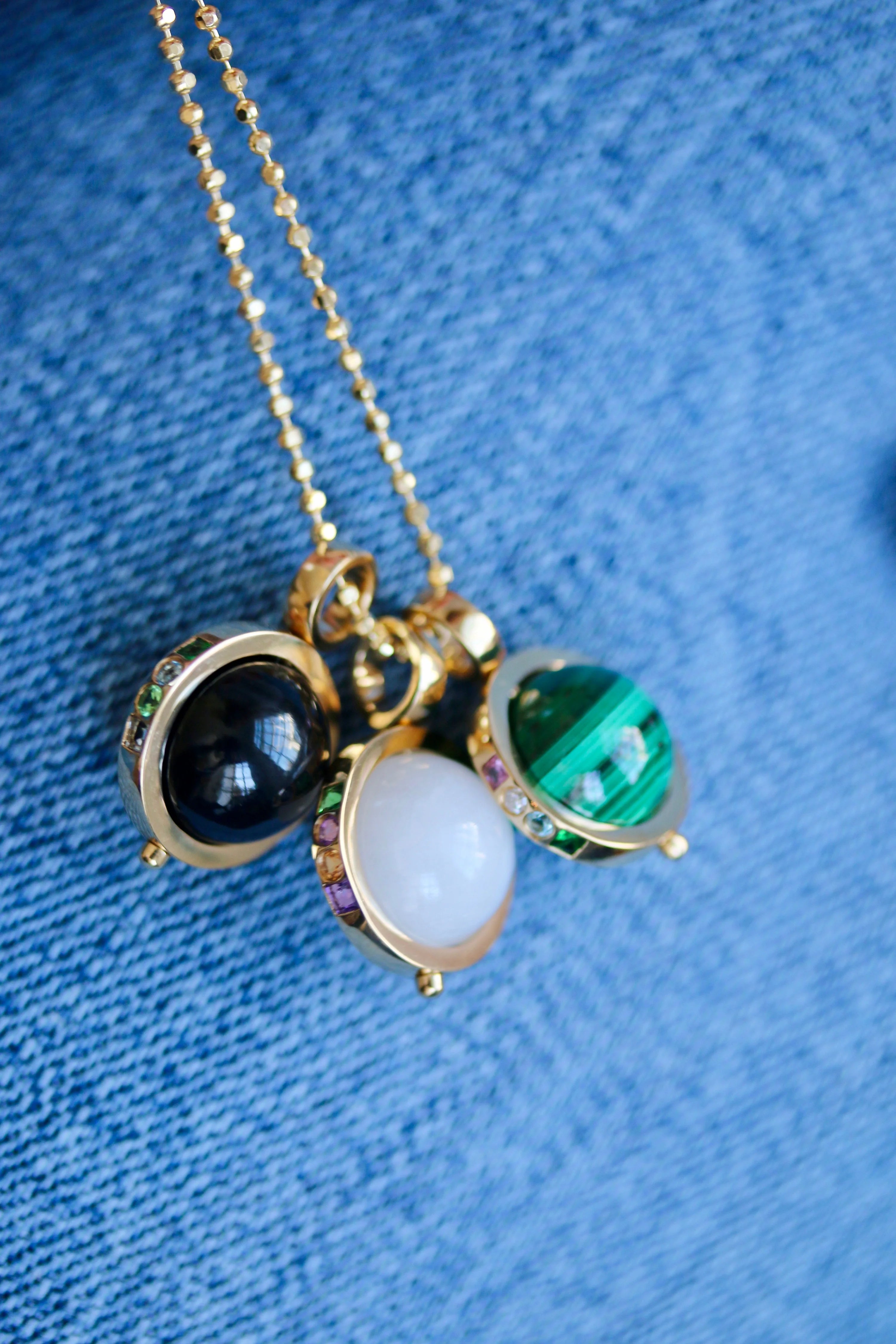 The White Agate Cosmic Spinner represents haptic jewelry at its finest. Crafted from 18k gold with meticulous attention to detail, this charm features a mesmerizing design that captures the essence of movement and fluidity. Its smooth contours and satisfying weight offer a comforting touch, making it perfect for that special someone with a restless mind.