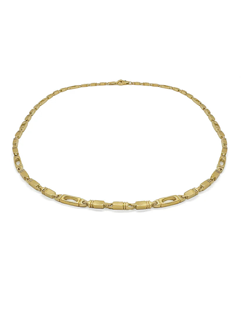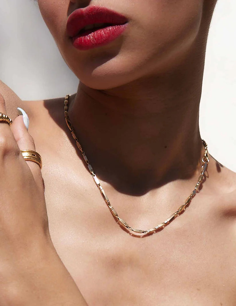 The Addai Link Necklace is the perfect mix of sturdy and dainty. A HOWL Jewelry staple, this piece showcases a variety of link designs featured around the necklace, each casted and crafted in Los Angeles. With a mix of rectangular and round shapes forming each link, this necklace has uniquely combined architectural strength with organic femininity.