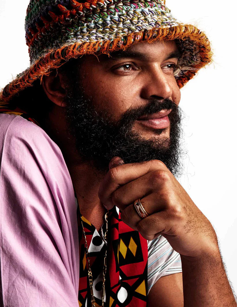 The Revolver Ring is a thick gold band adorned with bright red, Ruby stones promoting love, nurturing, and knowledge.