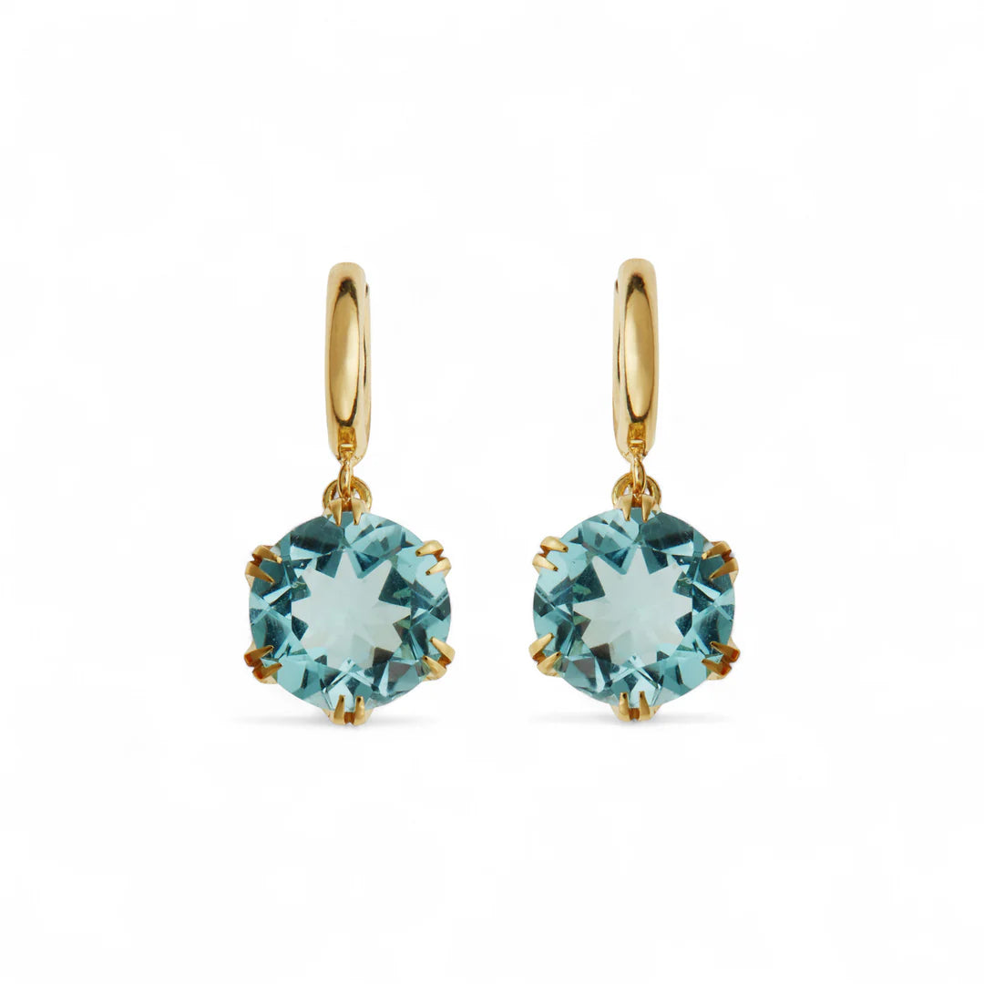Let yourself shine like royalty with these exquisite Mini Blue Topaz & Diamond Crown Hoops. Expertly handcrafted from 18k yellow gold, unique and lightweight, these earrings are the perfect choice for effortless elegance. Featuring Ileana's Signature Mini Hoop design and a charming dangling round Blue Topaz within a crown setting, these hoops will dress up any style with a beautiful touch of luxury.