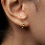 Stepping Stone Midi Hoops Yellow Gold Emerald and White Diamond