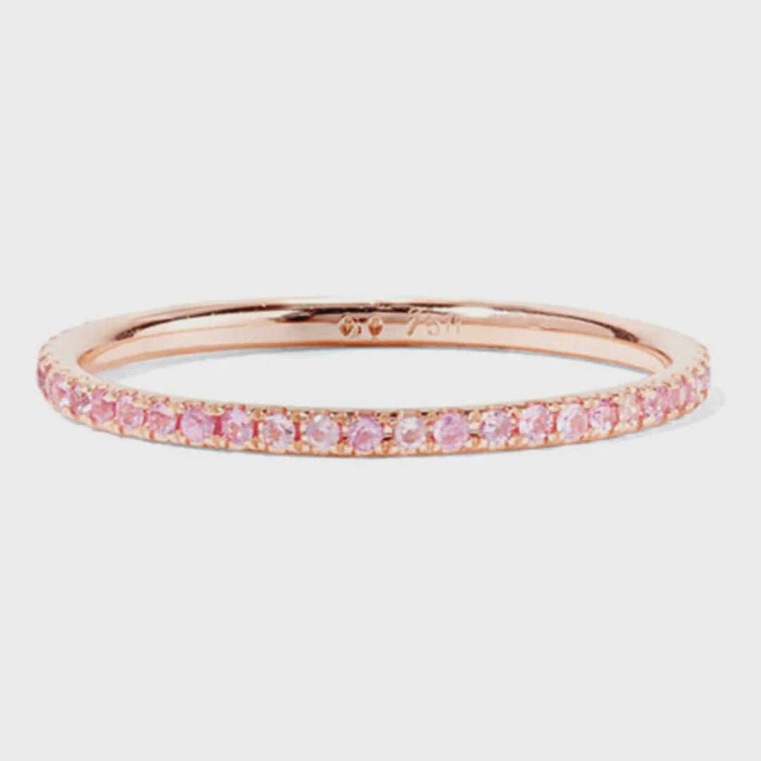 This exquisite handmade Thread Band is crafted from 18-karat gold, showcasing a luxurious 0.35 carat of pink sapphires that dazzle with their romantic glimmer. A timeless symbol of love and affection, this elegant piece will make the perfect proposal or anniversary gift.