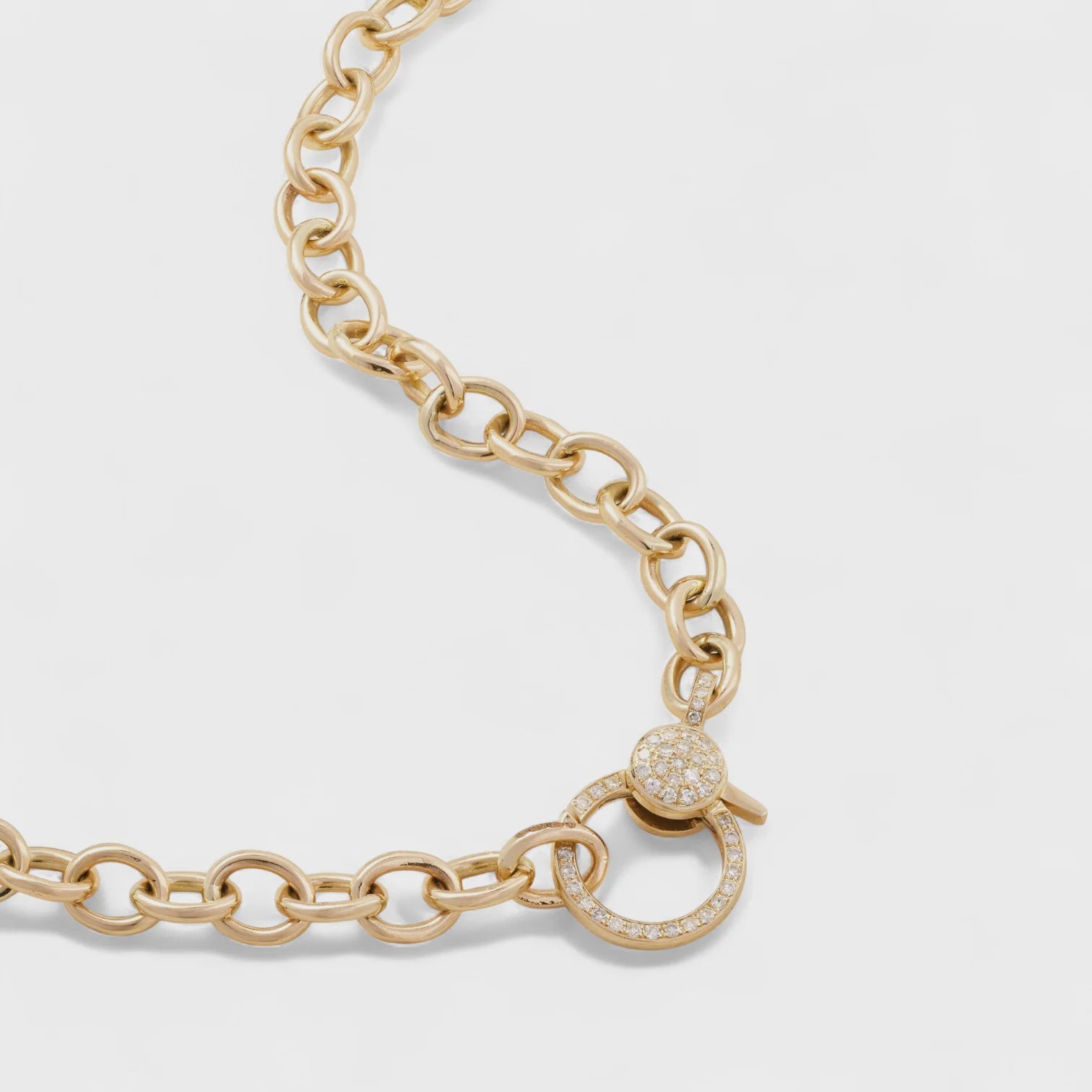 14k Yellow Gold Oval Chain Necklace with Diamond Lock