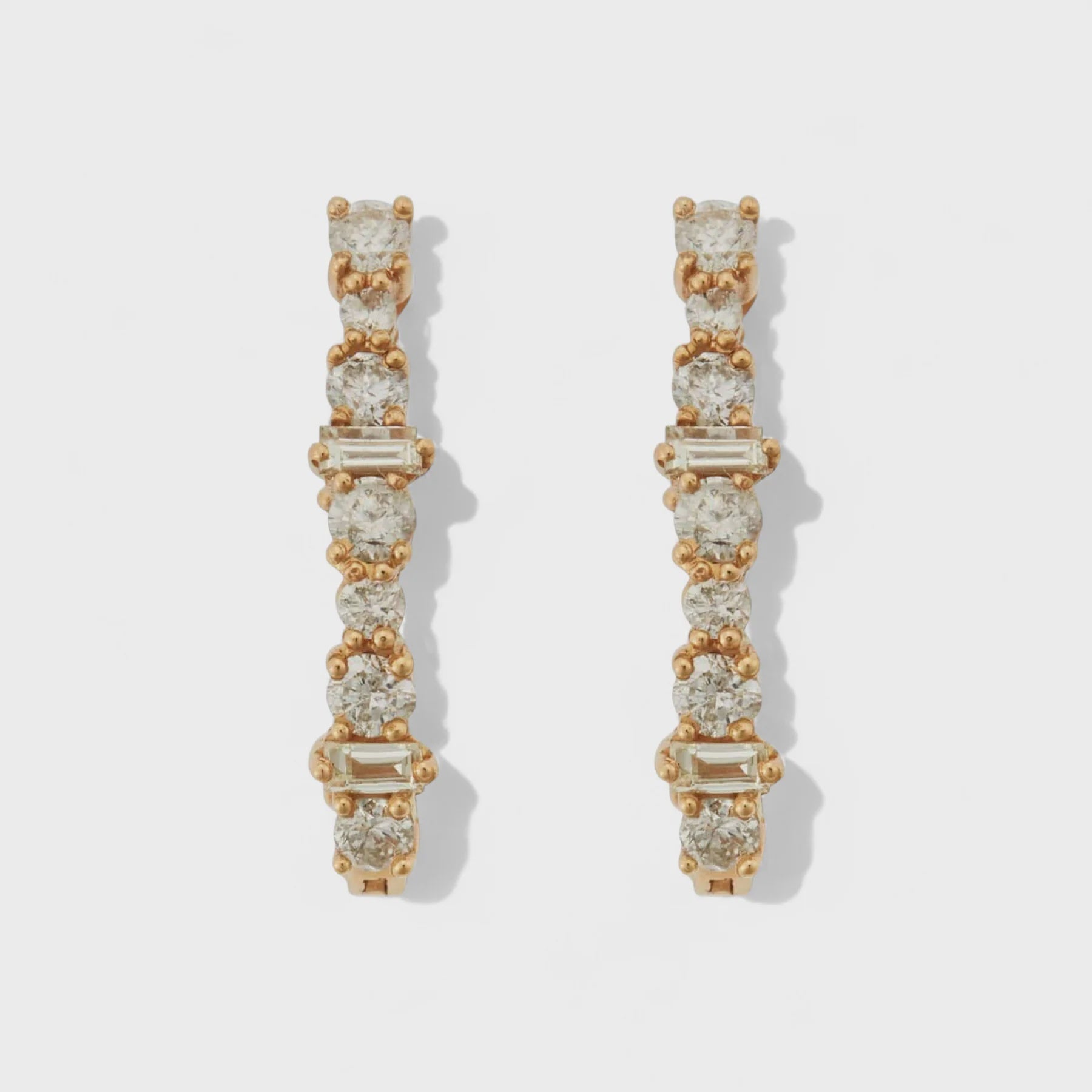 The Large Oval Rivulet Champagne Diamond Hoops by Ileana Makri embody understated glamour and fluid refinement. Expertly handcrafted in 18k yellow gold, these elegant hoops feature a seamless alternation of baguette and round champagne diamonds, creating a radiant play of light that dances with every movement. Their sculptural oval silhouette captures the essence of modern femininity — timeless, graceful, and effortlessly chic.