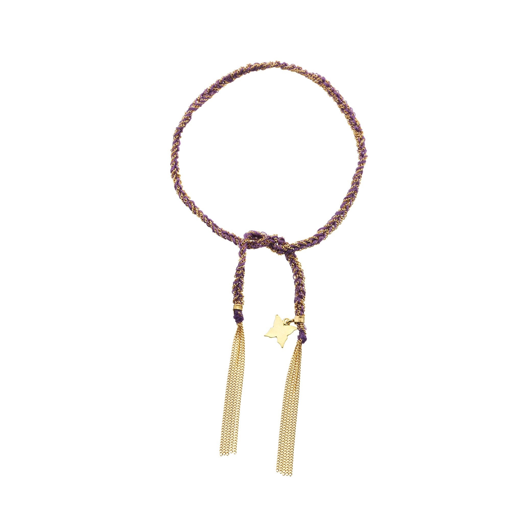18k Yellow Gold diamond-cut chain, hand braided with Beige silk and finished with a Freedom Charm.