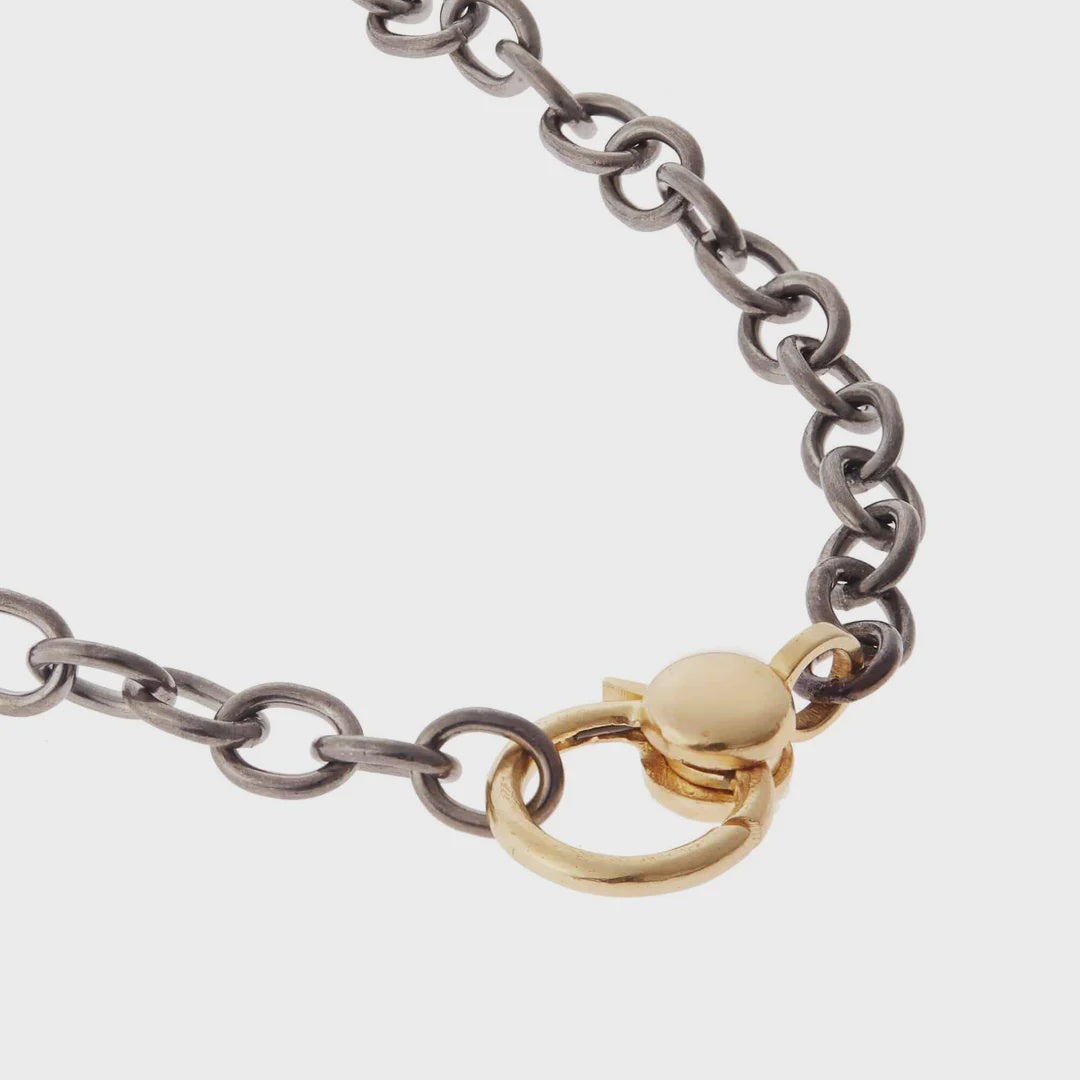 Oxidized Silver Oval Chain Necklace with Plain YG Clasp