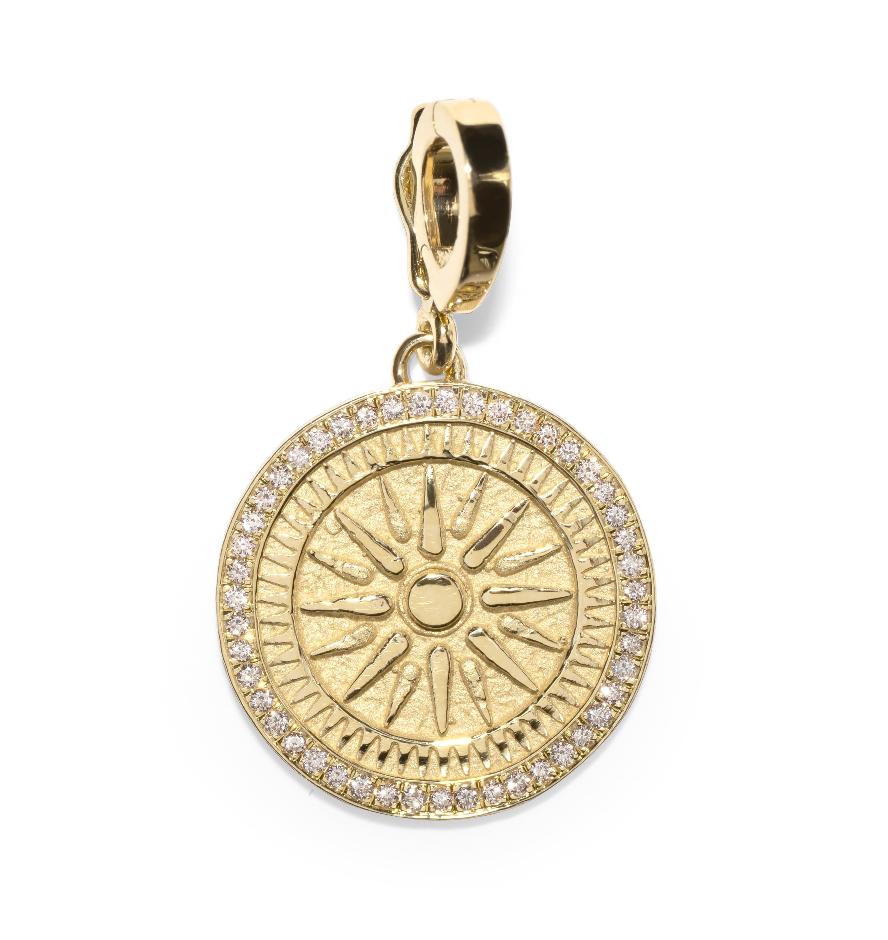 17mm coin; Made of 18K Yellow Gold & .15ct Pave Diamonds